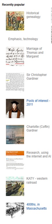 | Those images are shown on the right of the blog post with content for “All time, popular”; “Recently popular”; and “Last week”. The below image shows icons for a list of the “Recently popular” posts: 2023 and 2024.The most popular of these posts is from 2010 on the Battle of Bosworth. The 2nd most popular is from 2014 and reports our findings on the Marriage of Thomas and Margaret. |